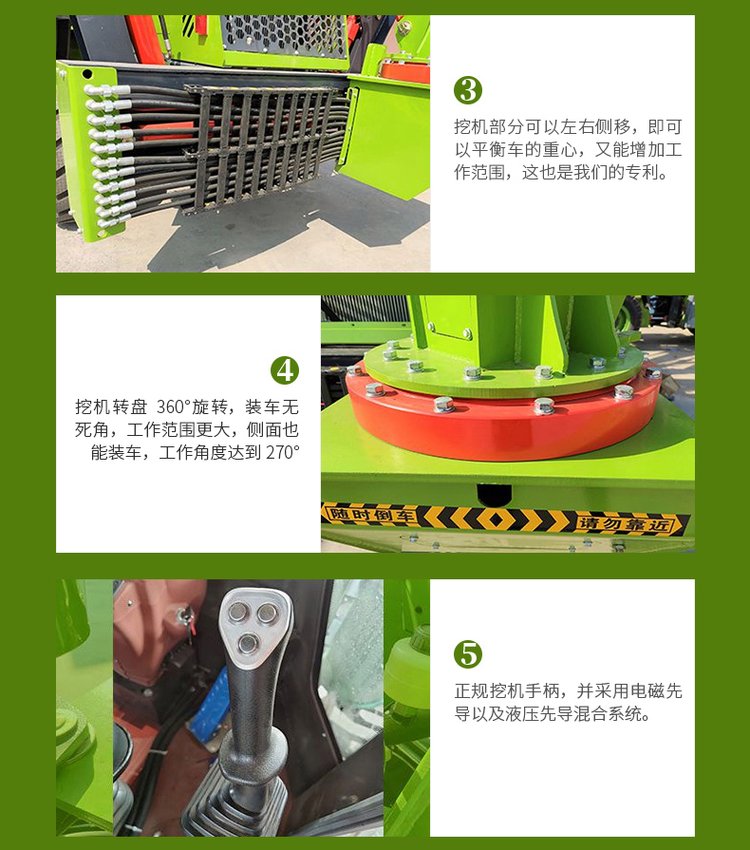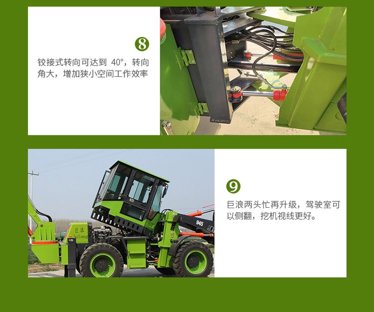 連接復(fù)合動作一拖二操作手柄,簡介易操作由于它具有共同的結(jié)構(gòu),前端是裝載設(shè)備,后端為發(fā)掘設(shè)備。在施工時(shí),操作手只需求翻滾一下座椅,就可以結(jié)束從裝載機(jī)到發(fā)掘機(jī)的改動。鏟挖一體機(jī)首要用于城市和村莊的公路制作及維護(hù)、電纜鋪設(shè)、電力和機(jī)場工程、市政制作、農(nóng)田水利制作、村莊住宅制作、開山取石以及各種小型建筑隊(duì)所從事的各種建筑施工工程。“兩頭忙”歸于小型多功能工程機(jī)械的一種,一般在大工程結(jié)束后的小工程中運(yùn)用。它可配多種作業(yè)設(shè)備及輔具,進(jìn)行發(fā)掘、鏟裝、路面破碎、平整場所、開挖水溝、鋪設(shè)管道等多種作業(yè)。